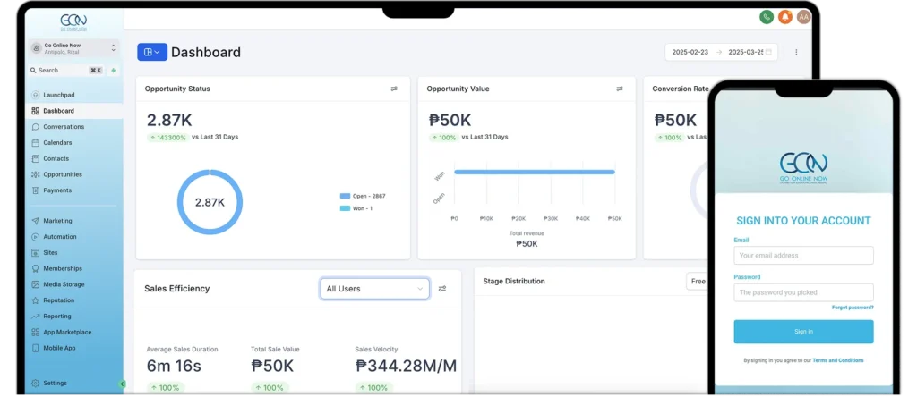 - One login: unified CRM + automation + email/SMS/calendar